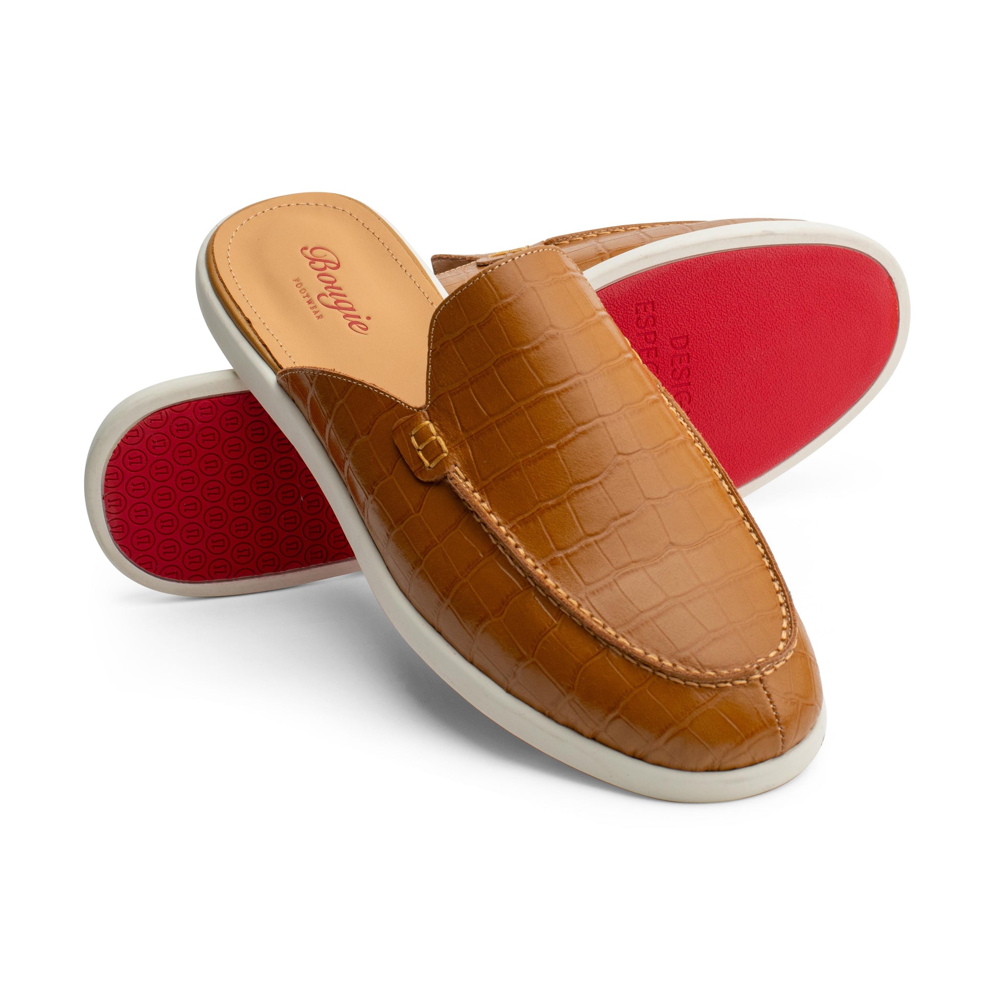 راحة مُريحة بلمسة راقية. يتميز بوجيز سليبر كروكو بني جمل بجزء علوي بني-بني غني بنقشة جلد التمساح، مما يمنحكِ شعورًا بالفخامة وسهولة الارتداء. تصميمه المفتوح من الخلف يُسهّل عليكِ ارتداؤه وخلعه، بينما يُضفي النعل الأوسط الأبيض النظيف والنعل الخارجي الأحمر الجريء لمسة عصرية ومُرحة.