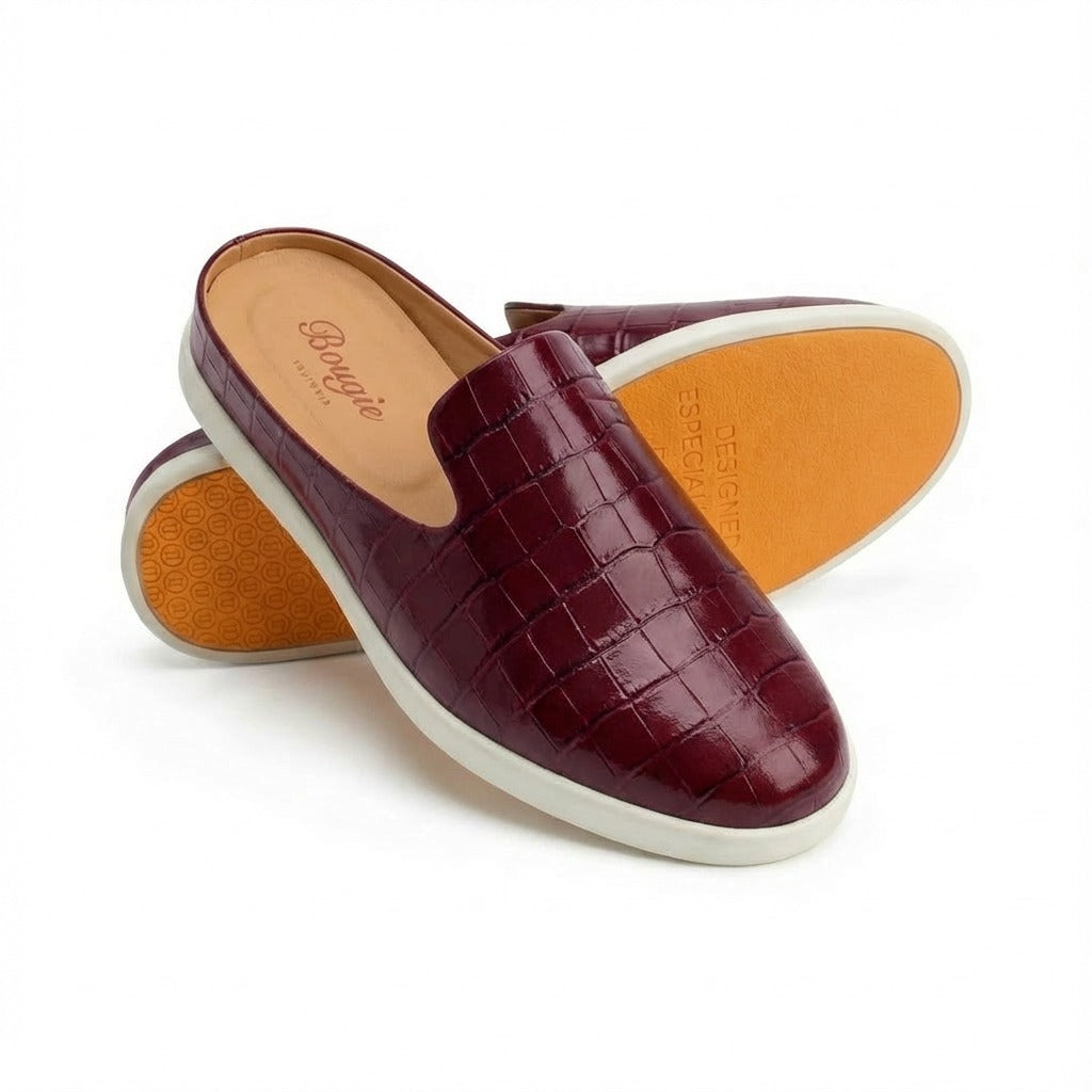 أضف لمسة من الفخامة إلى إطلالتك اليومية مع شبشب Bougies Red Wine المصنوع من جلد التمساح. يجمع هذا التصميم سهل الارتداء بين جزء علوي غني بنقشة جلد التمساح بلون النبيذ الأحمر ونعل أبيض أنيق لإضفاء لمسة عصرية ومريحة. مريح وأنيق وسهل الارتداء، إنه الخيار الأمثل للأيام التي ترغبين فيها بإطلالة أنيقة دون عناء.