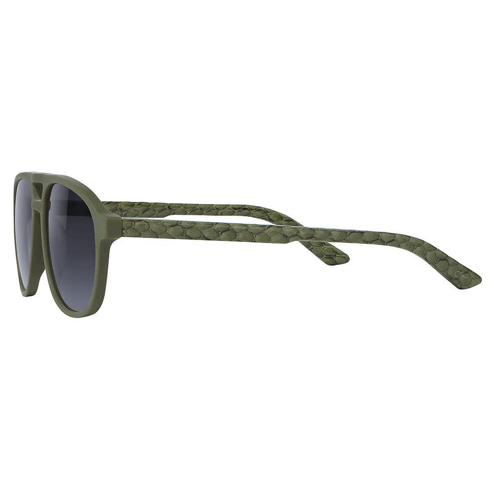 جلد الثعبان يتناغم مع أسلوب مايفير. هارودز ليذر جزء من مجموعة JZ Exclusive Eyewear ، حيث يمزج واجهة أمامية سوداء أنيقة مع أذرع مغطاة بجلد الثعبان الأصلي لإضفاء لمسة راقية وفاخرة. يلتقط جلد الثعبان المزخرف على طول الذراعين الضوء أثناء الحركة، مما يمنح الإطار مظهرًا أنيقًا ومُصممًا خصيصًا.