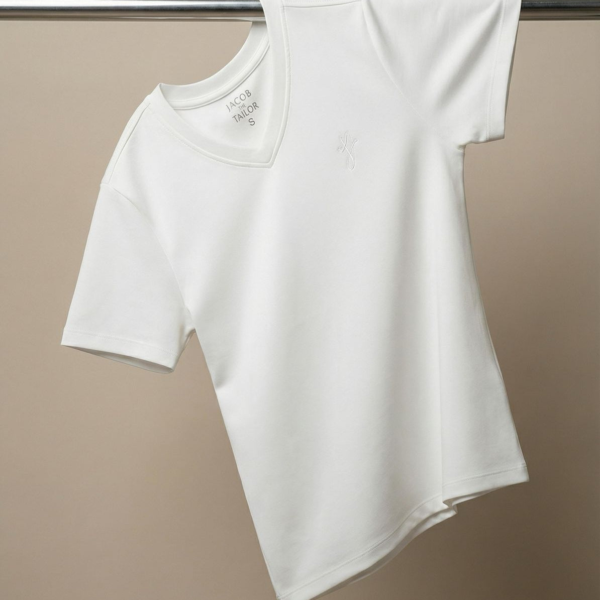 جاكوب ذا تايلور تي شيرت برقبة مثلثة من قماش بارد أبيض
