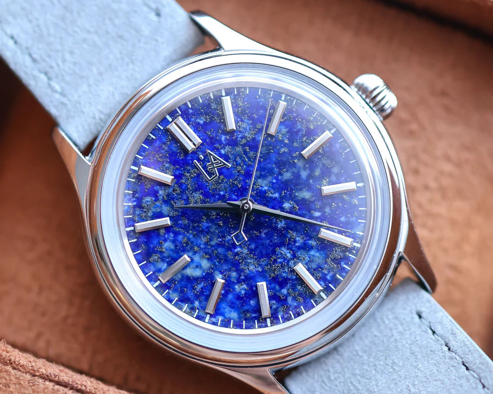 يجمع ميناء لارتيزان لابيس بين تقاليد صناعة الساعات وأحد أعرق الأحجار الكريمة في العالم. صُنع الميناء من حجر اللازورد الطبيعي الأصيل، وهو حجر كان يُخصص للأباطرة والفراعنة، ويشتهر بلونه الأزرق السماوي الغامق، المُرصّع بأحجار البيريت الذهبية التي تتلألأ كالنجوم في سماء الليل.