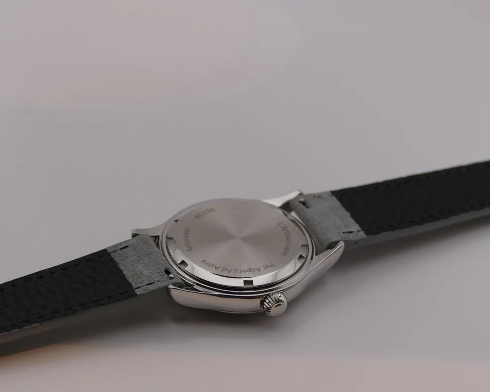 الساعة مُصممة بحزام من جلد الغزال الرمادي الأصلي يُحيط بالمعصم براحة، مع علبة من الفولاذ المقاوم للصدأ 316L المصقول الذي يلتقط الضوء دون أن يُلفت الانتباه. إنها ليست مجرد إكسسوار، بل هي تميمة لمن يعتبرون الوقت شيئًا يُصنع، لا مجرد قياس.