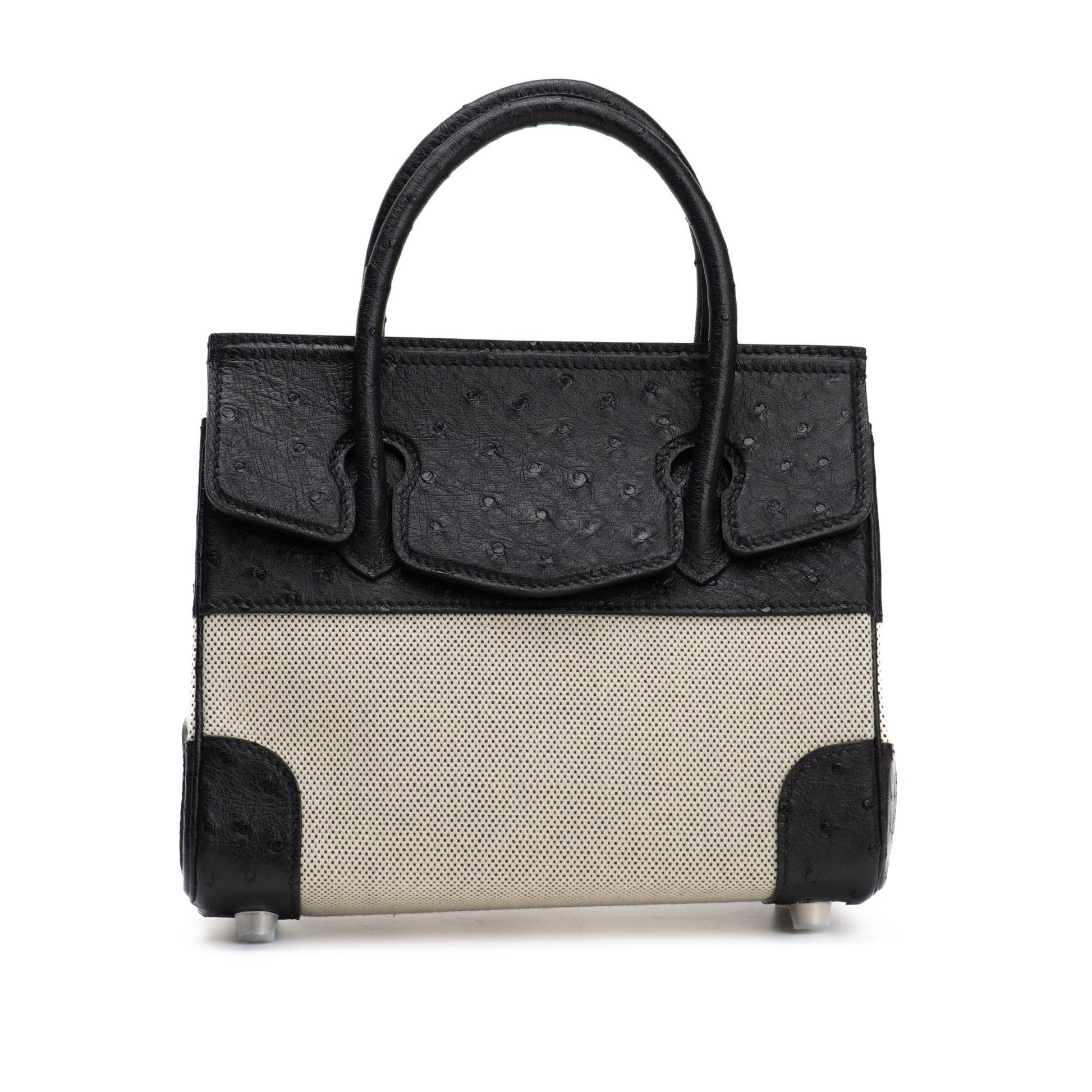 BLACK OSTRICH WITH BEIGE CANVAS BAG SIZE 20